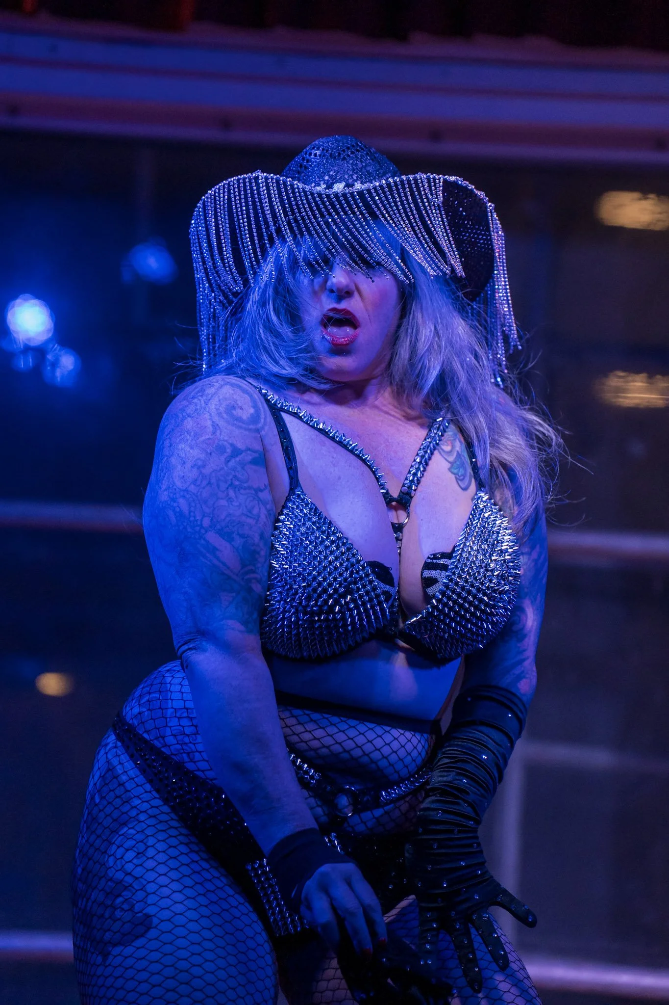 Just when you thought it was safe to go back on stage... Dive into danger and delight with this jaw-dropping burlesque acro chair act with Leslie Hills! Featuring a fierce shark and a curious swimmer, this act blends high tension, high stacks, and high camp—it’s a bite you won't forget!